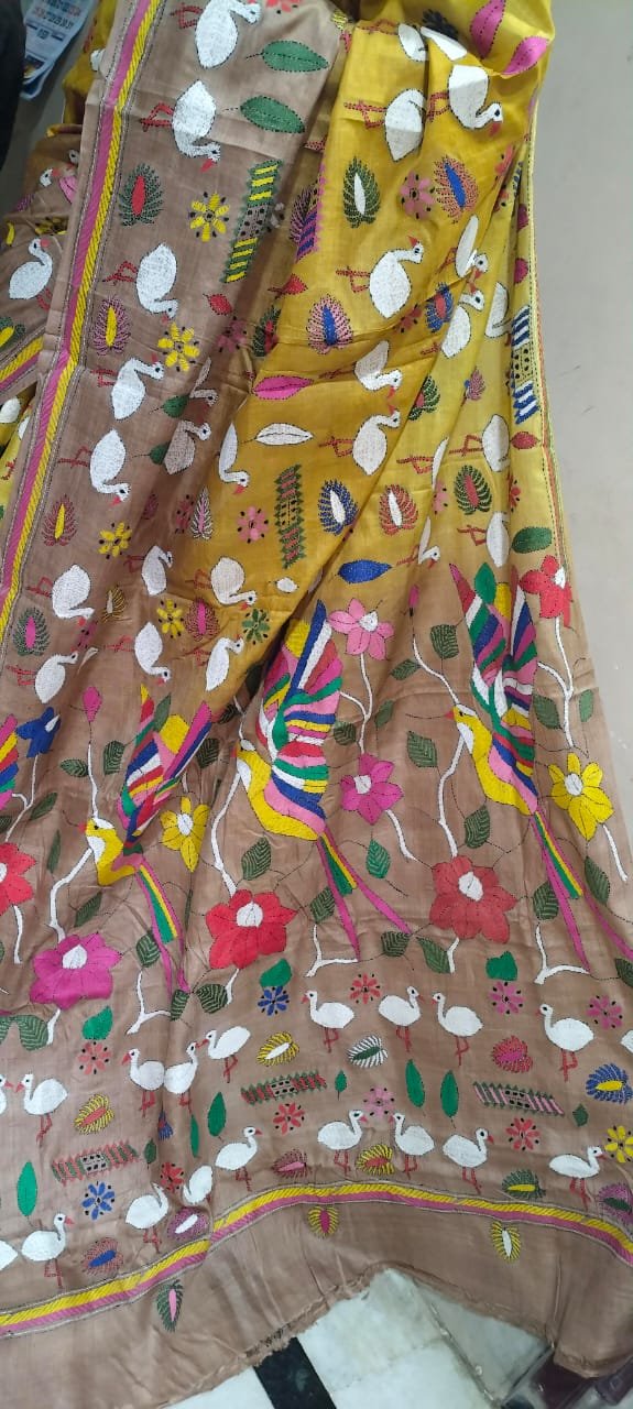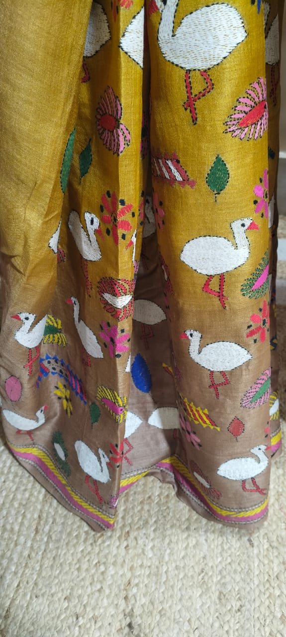 What sets Gachi Tussar Silk apart is its luxurious texture and natural sheen. This fabric is lightweight yet durable, ensuring comfort without compromising elegance. The Neelam Creation version features handwoven silk sourced ethically, promising quality you can trust. It exudes sophistication while its Kantha embroidery showcases delicate hand-stitching traditions, making it a wearable work of art.