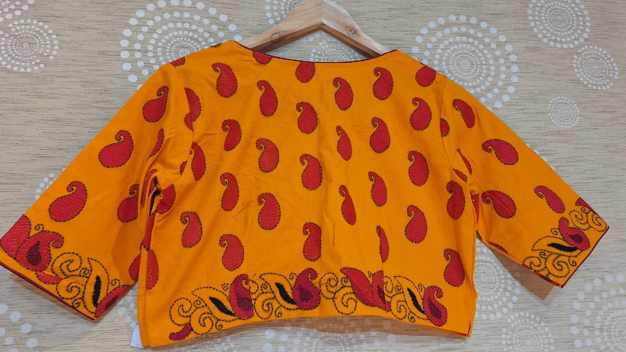 Made from high-quality materials, this blouse is both durable and breathable, ensuring maximum comfort during extended wear. The fabric is carefully chosen to maintain its lush texture and shine, making it a timeless addition to your ethnic collection. Attention to detail is evident in every stitch and embellishment, allowing you to enjoy fine craftsmanship without compromising on quality.