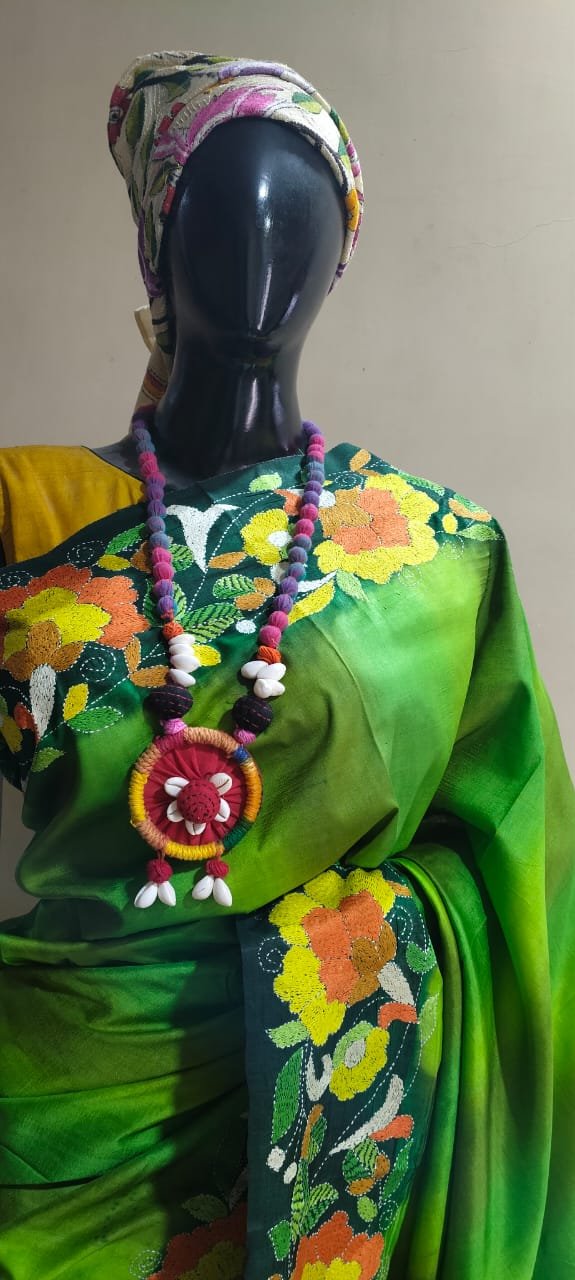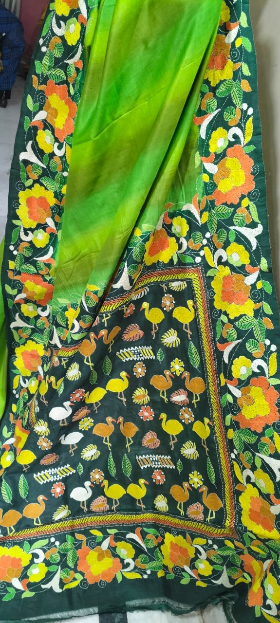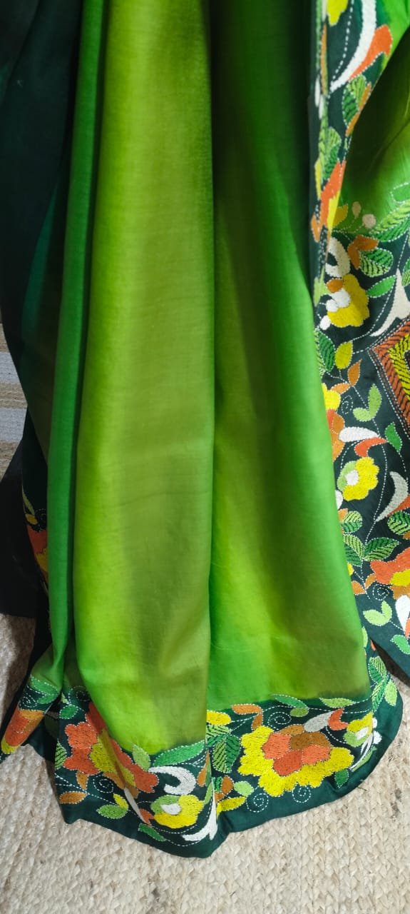 Katan Silk Saree with Hand kantha work
