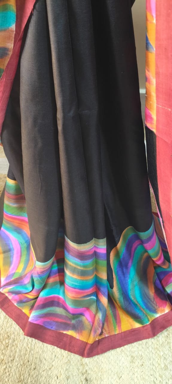 The Katan Silk used in this saree is a premium, pure fabric known for its smooth texture and unparalleled sheen. Perfectly hand-printed with intricate patterns, the saree reflects artistry and finesse in every detail. The silk threads are carefully woven to deliver strength and durability without compromising on the lightness and comfort you desire. This saree is a testimony to the rich cultural heritage of India, blended seamlessly with modern craftsmanship. Let the soft, luxurious touch of silk drape you in elegance, making you stand out effortlessly.