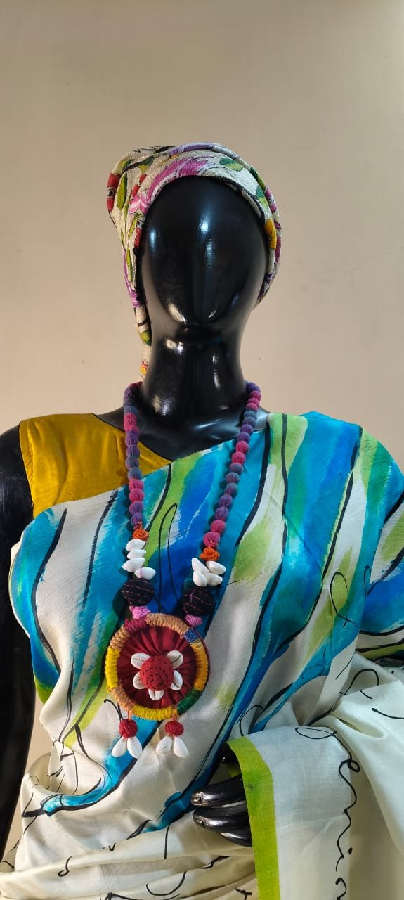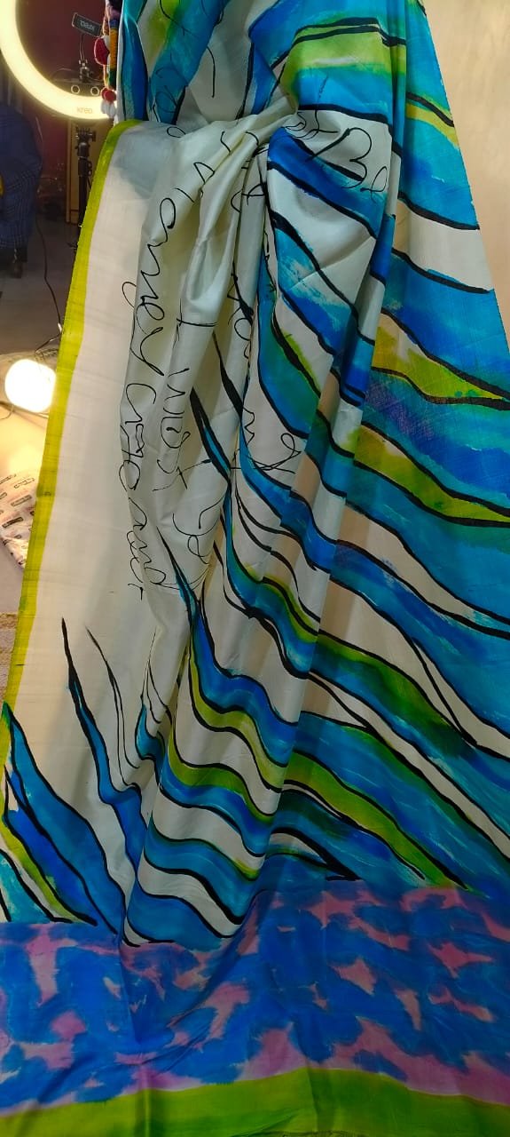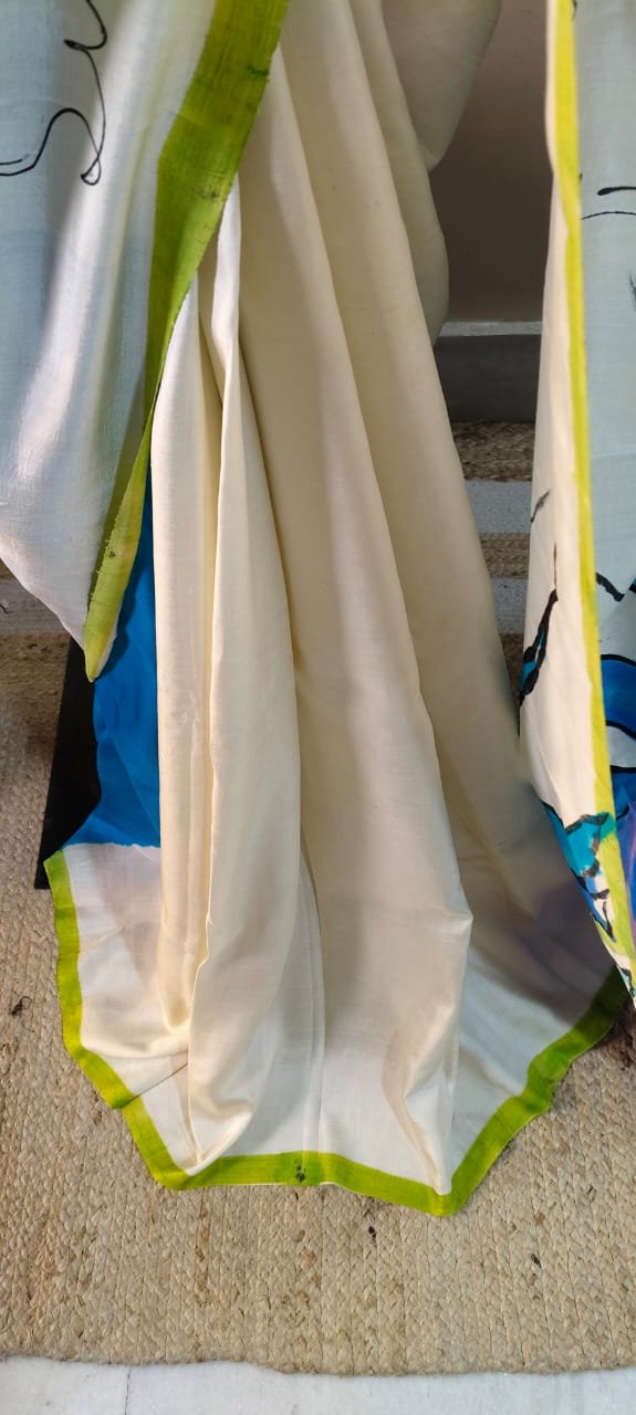 The handprint detailing elevates the saree to a work of art. Crafted by skilled artisans, each design reflects precision and tradition, guaranteeing uniqueness with every purchase. The intricate patterns are thoughtfully embedded to complement the natural sheen of Katan Silk, resulting in a saree that is more than just apparel—it’s a piece of wearable artistry.