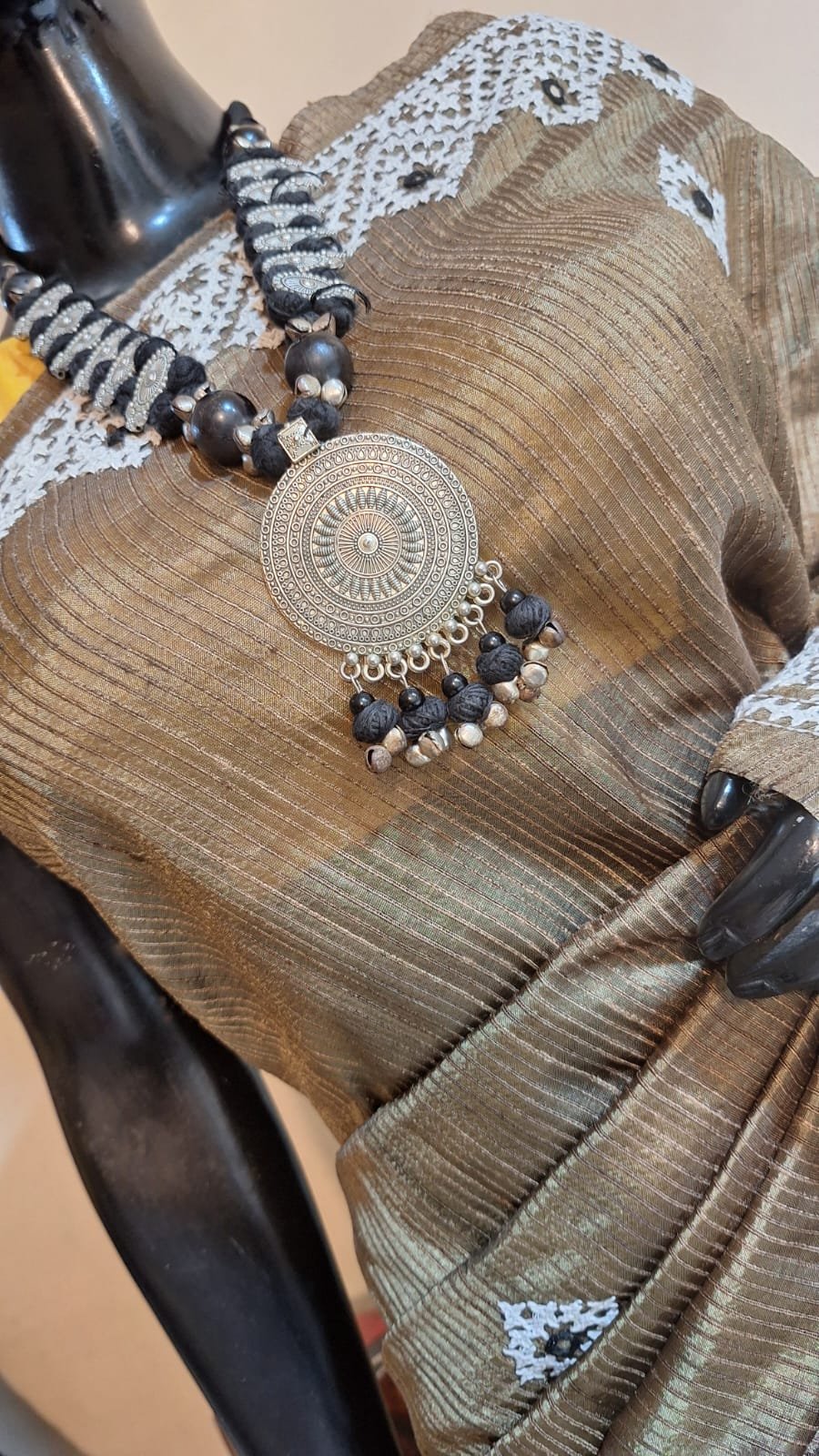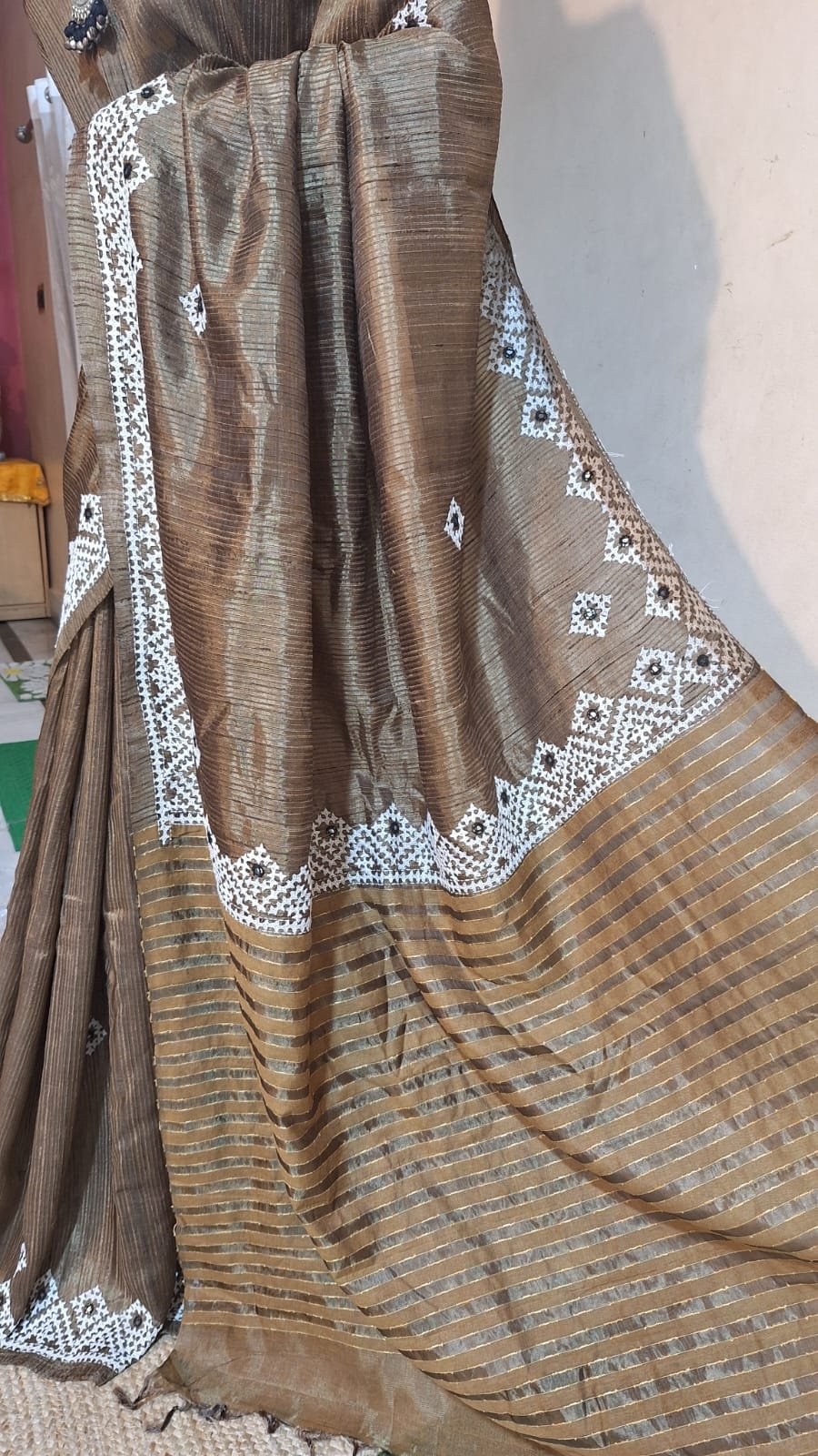 This saree is designed to cater to your every need—comfort, elegance, and durability. The lightweight tussar silk ensures an easy drape, while maintaining its natural earthy appeal. Neelam Creation’s dedication to perfection ensures every saree embodies beauty and finesse. Whether you are looking to make a statement at a festive gathering or want to wear a timeless piece that complements your style, this saree is a perfect choice. Pair it with minimal jewelry to let its intricate work shine or accessorize boldly for a regal effect—the possibilities are endless.