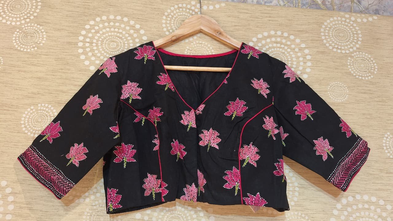 The Readymade Blouse with Handwork is more than just a piece of clothing; it’s a versatile staple that adapts to various styling needs. Pair it with a classic silk saree for a regal appearance or wear it with a lightweight chiffon saree for a contemporary vibe. Its detailed handwork adds a touch of sophistication, setting you apart at any event.