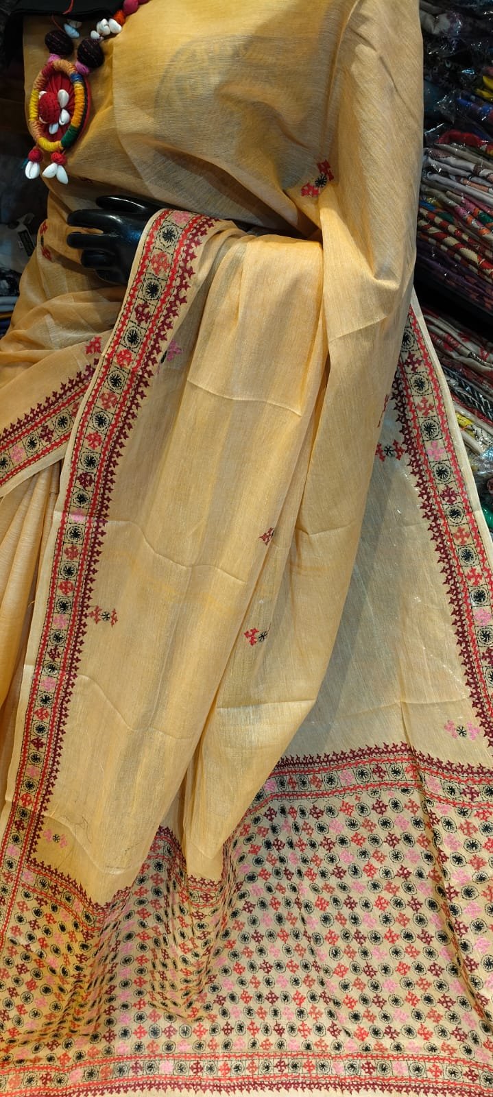 Immerse yourself in the rich cultural tapestry of India with the Semi Tussar Gujarati Work Saree from Neelam Creation. Crafted meticulously with traditional Gujarati handwork on premium Semi Tussar fabric, this saree offers unparalleled elegance and comfort. Whether you’re attending weddings, festive occasions, or a cultural event, this saree is a perfect blend of traditional artistry and modern sophistication that effortlessly stands out.