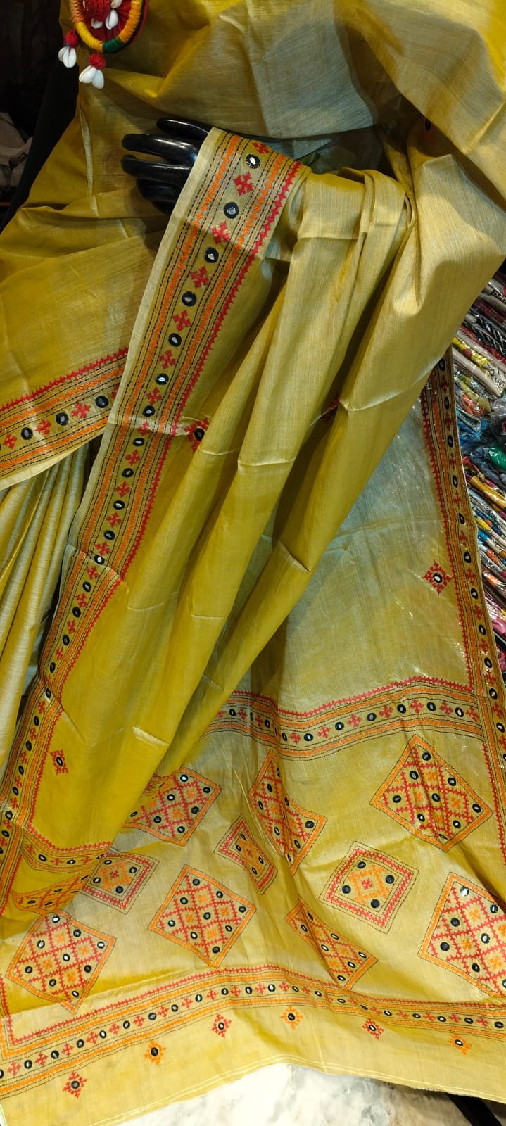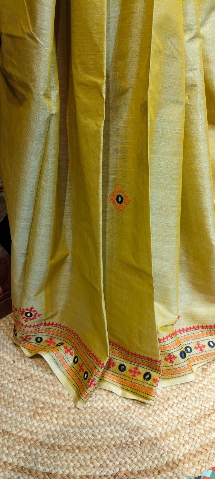 Experience the timeless allure of tradition with the Semi Tussar Silk saree featuring intricate Gujarati work from Neelam Creation. Perfect for those who appreciate fine craftsmanship and the cultural richness of Indian heritage, this saree seamlessly blends elegance with comfort. Each design element is carefully detailed to highlight the artistry that Gujarati work is renowned for, delivering a sophisticated yet vibrant aesthetic ideal for any occasion.