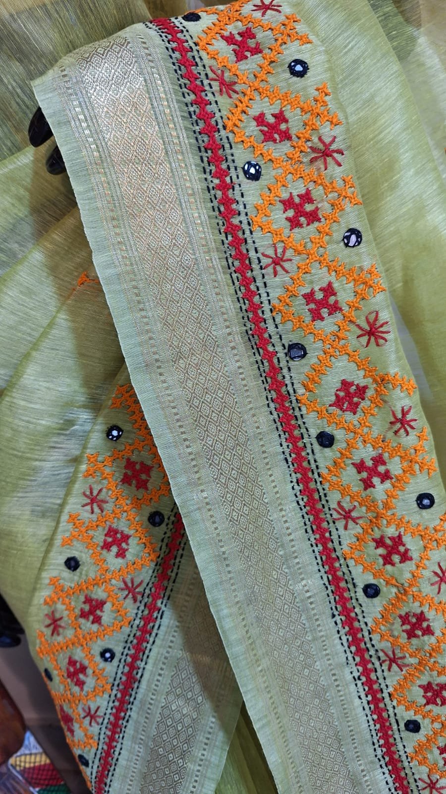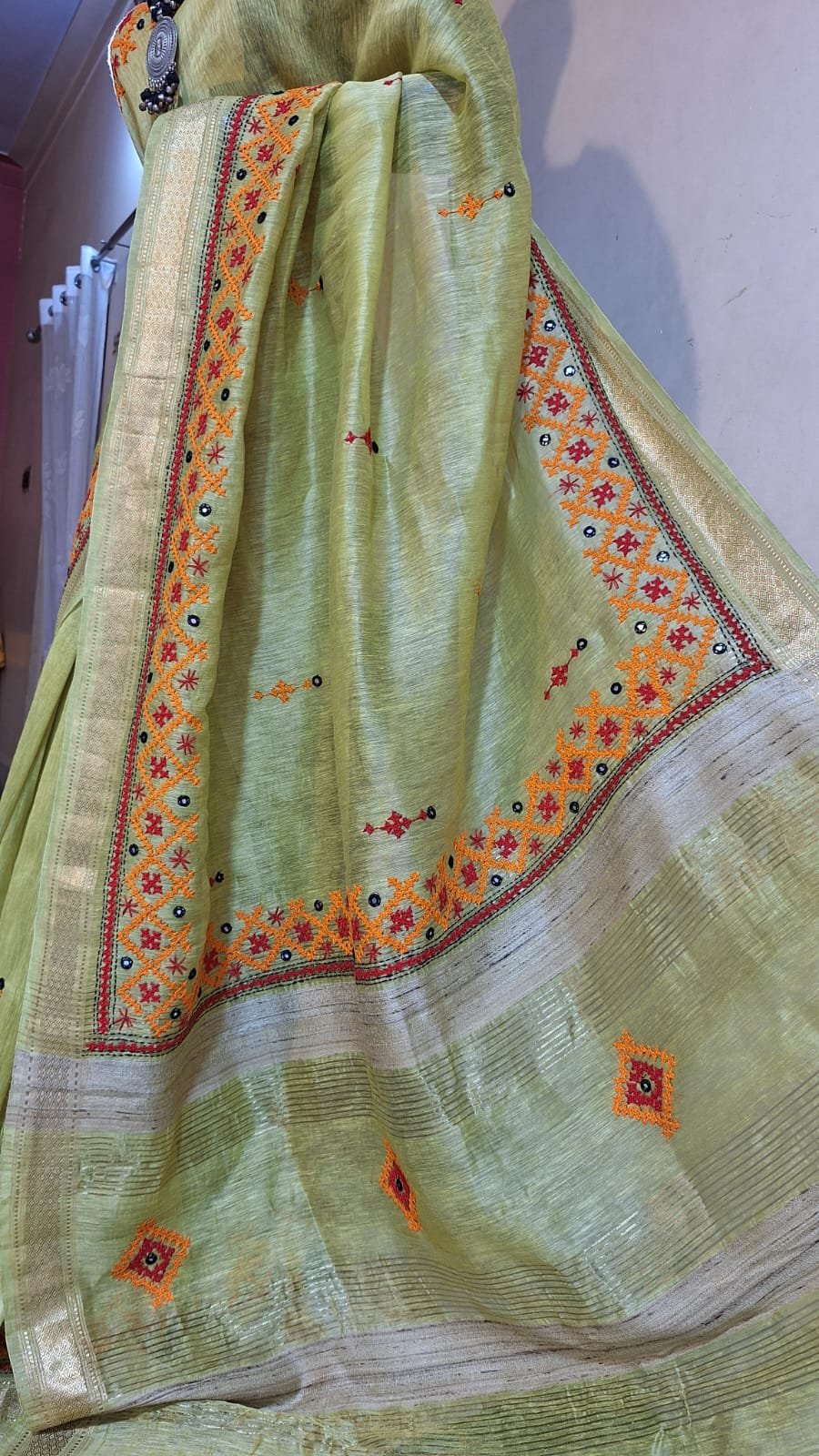 The Silk Lilan Saree with Gujarati work by Neelam Creation is a masterpiece that promises to elevate your elegance effortlessly. Designed with intricate craftsmanship and a seamless fusion of tradition and style, this saree is ideal for those who appreciate exquisite artistry while enjoying the comfort of silk. Whether it’s a wedding, festive gathering, or intimate occasion, this saree is bound to make you the center of attention.