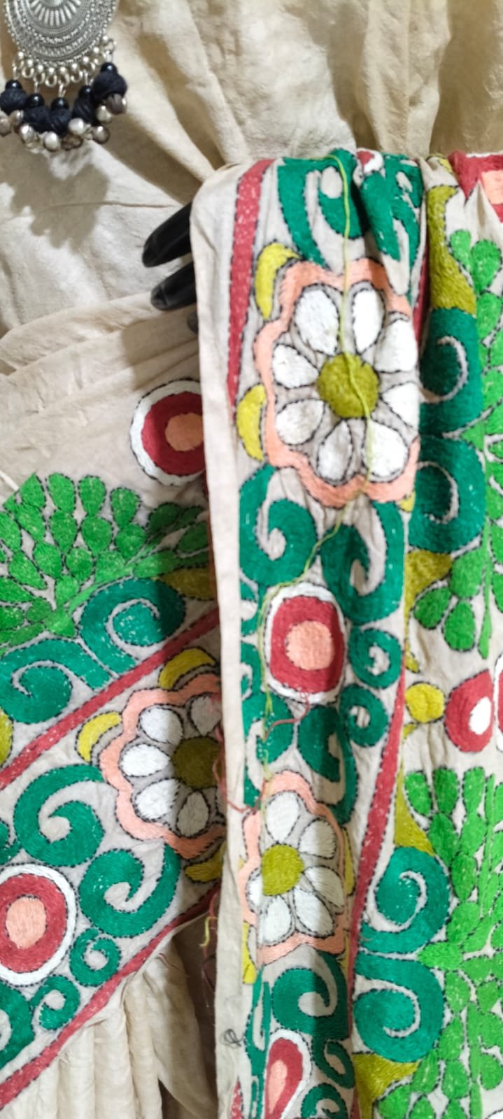This Tussar Kantha Stitch Saree comes in exquisite color options and designs that suit a variety of tastes. Whether you’re looking for an outfit for a festive gathering, wedding ceremony, or cultural event, this saree is an excellent choice. Pair it with statement jewelry to make a striking impression or keep it minimal for an effortlessly chic look. It is more than an outfit; it’s an expression of artistry and elegance.