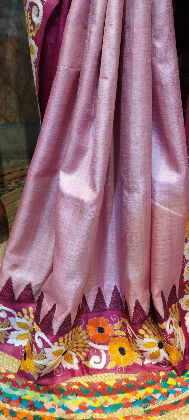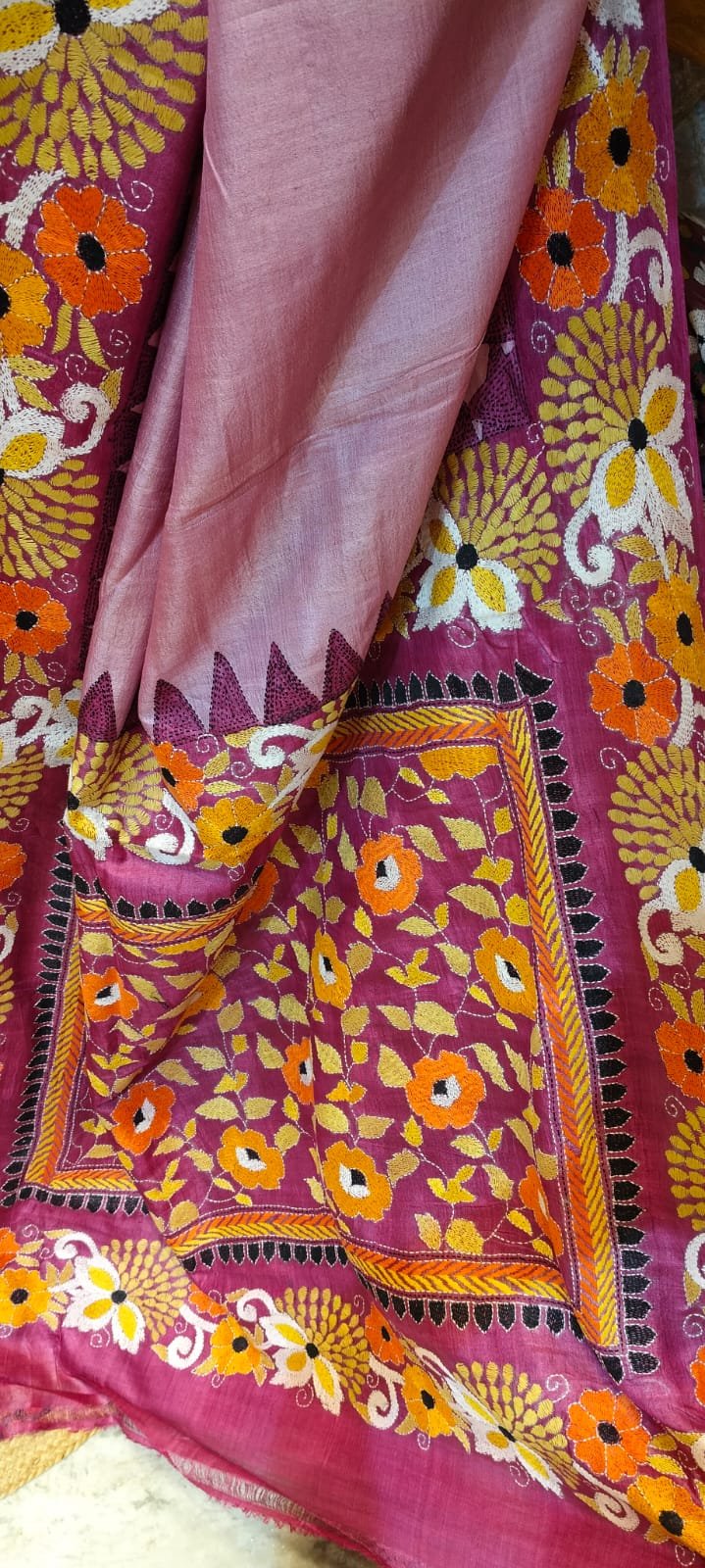 With a commitment to quality and authenticity, Neelam Creation brings you a saree that stands out for its artistry and craftsmanship. Each piece is intricately designed and curated to resonate with elegance and tradition, ensuring that you receive nothing but the best. Celebrate your love for sarees with this exquisite Tussar Kantha Stitch creation, and make every moment a memory.