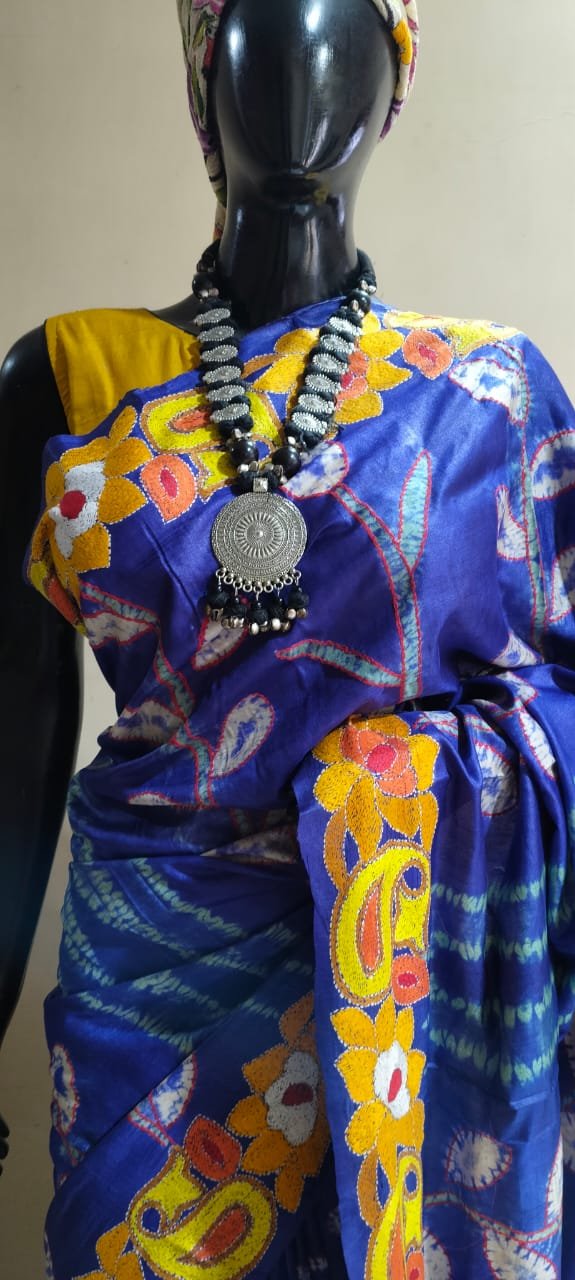 Indulge in the understated charm and luxury of our exquisite Tussar silk saree, brought to you by Neelam Creation. Made from premium-quality silk, this saree stands as a testament to traditional craftsmanship and ageless fashion. The luminous texture and distinct feel of Tussar silk instantly elevate your presence, making it the perfect attire for cultural events, weddings, or even formal gatherings. When you wear this saree, you don’t just wear an outfit; you carry a piece of heritage with you.