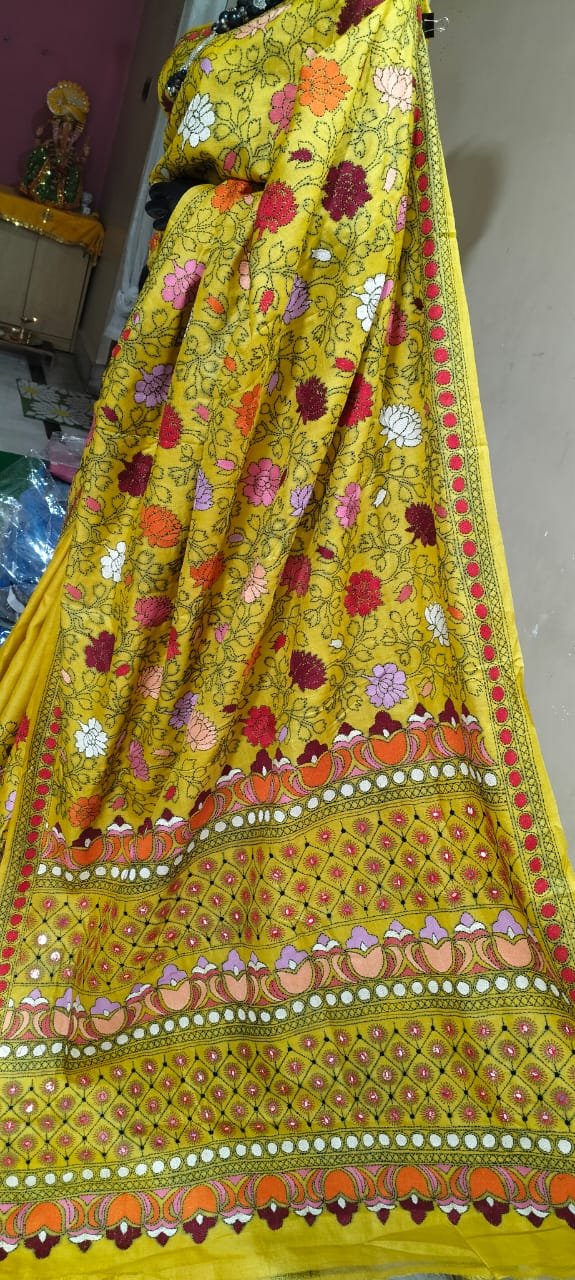 Step into the world of timeless fashion with the Tussar Kantha Stitch Saree from Neelam Creation. This saree is an exquisite blend of tradition and craftsmanship, encapsulating the beauty of hand-embroidered Kantha stitches on luxurious Tussar silk fabric. Whether you’re attending a festive celebration, wedding, or formal gathering, this saree ensures you make an unforgettable style statement.