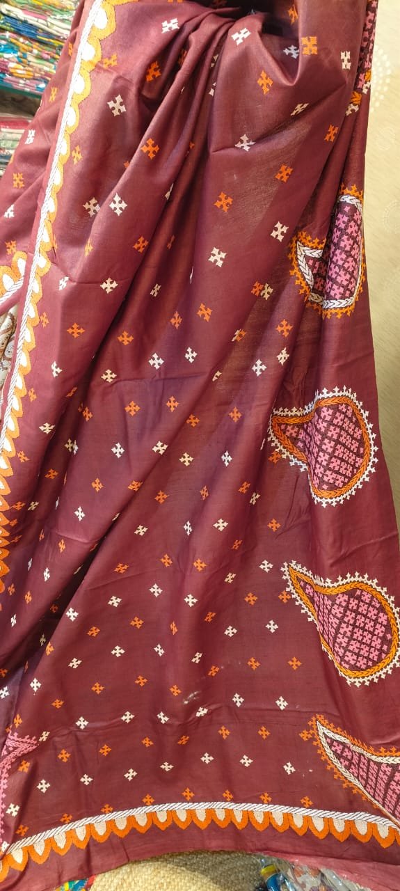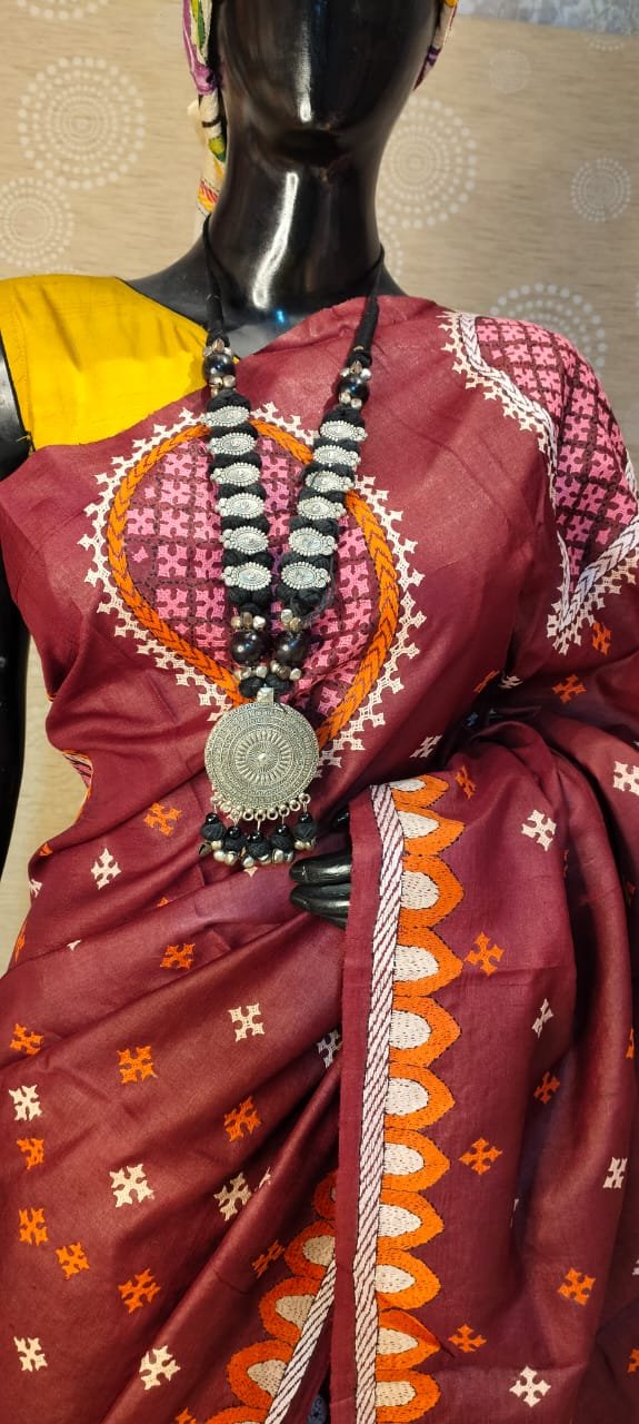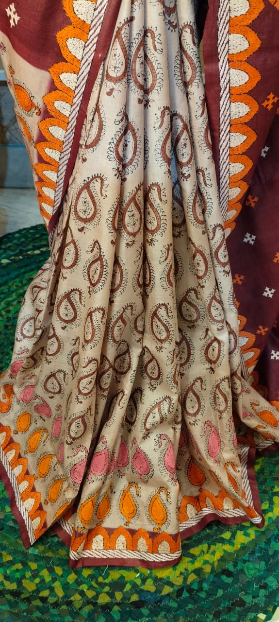 Be the first to review “Tussar Silk with hand block kantha Stitch Saree”